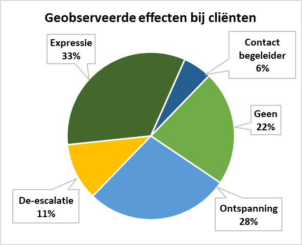 Bij slechts 4 sessies (6%) werd een kleine stijging in spanning/onrust geobserveerd (bij 3 sessies: groen > geel en bij 1 sessie: