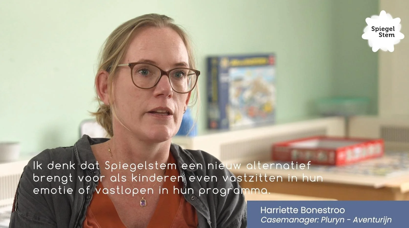 Hoofdbevindingen: Uit gesprekken met dagbesteding de Zonnering (Pluryn) kwam naar voren dat zij met name potentie zagen in het gebruik van Spiegelstem als tool voor: uiting van emoties, emotieregulatie, de-escalatie, reflectie/introspectie, en interactie met anderen. Daarnaast zou het een mogelijke aanvulling kunnen zijn voor sychomotorische of beeldende therapie. Bij orthopedagogisch centrum de Trampoline zag men met name potentie op het gebied van: expressie, ontspanning, taal/stemgebruik, sociale interactie, gebruik als intake of observatietool. Ook zou het mogelijk gebruikt kunnen worden bij speltherapie (floorplay) of logopedie.